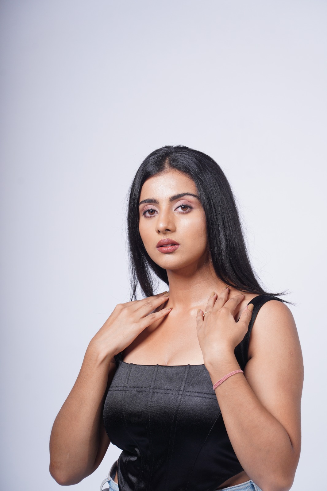 The look featured in this image highlights a soft glam party makeup style with smooth skin finish, defined eyes, and a natural nude lip shade. This style is perfect for evening parties, special events, photoshoots, and celebrations, giving a polished and sophisticated appearance while keeping the makeup natural and radiant.